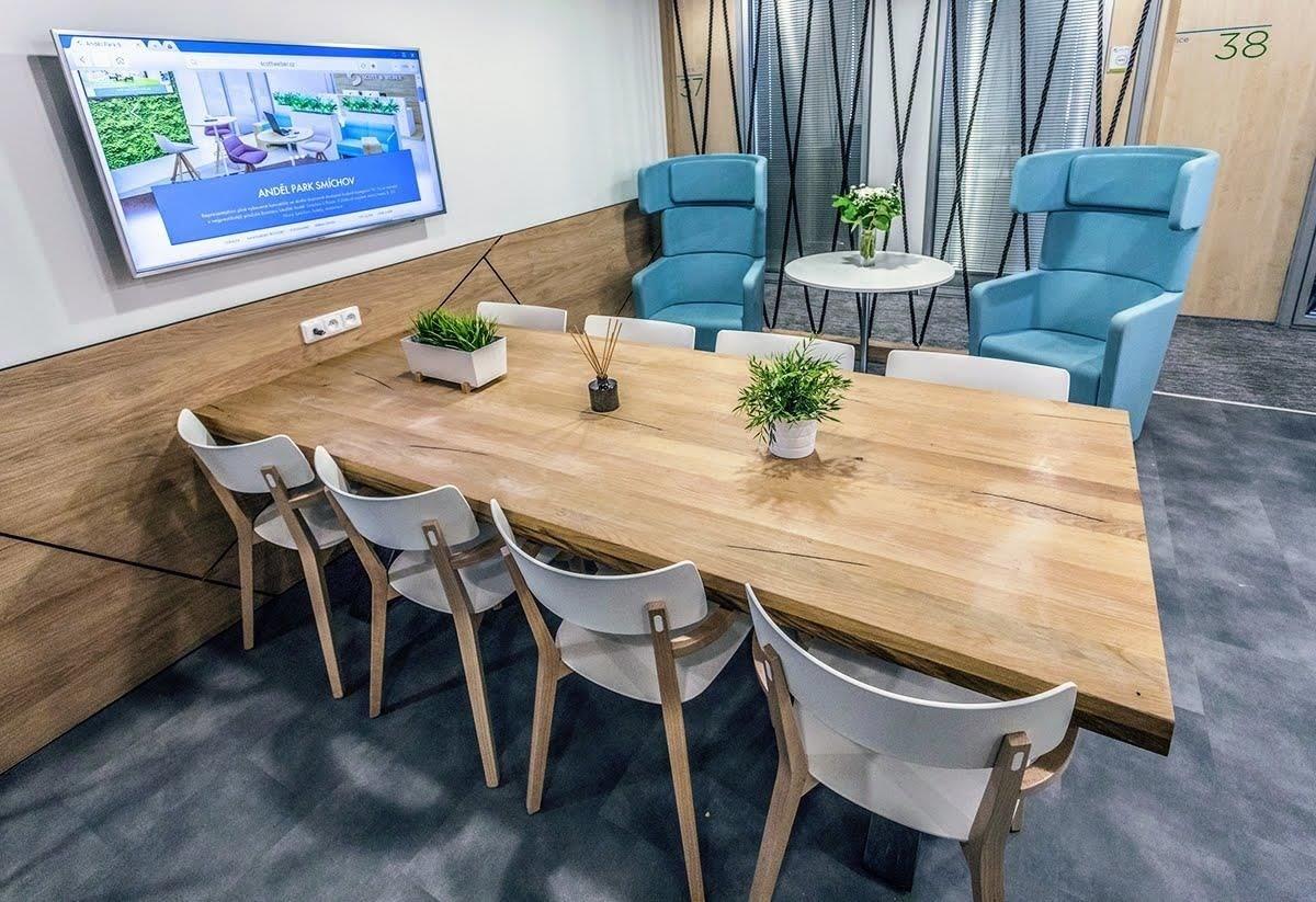 Business Centrum Anděl Park Smíchov nabízí k pronájmu plně vybavené a servisované kancelářské prostory. Ve vstupní části prostor se nachází vlastní recepce (8:30 17:00) s reprezentativními osobními asistentkami se znalostí angličtiny, které se starají o veškerý klientský servis (objednávky, pošta, návštěvy). Všechny kanceláře i společné prostory jsou klimatizované. V ceně nájmu je již zahrnuto: vybavení kanceláře, služby recepce, denní úklid, energie, relax zóna. Možnost využívat kopírovací centrum a reprezentativní zasedací místnosti různých velikostí (od 450 Kč/hod.). Plně vybavené kuchyňky denně zásobené nealkoholickými nápoji káva, čaj, voda s neomezenou konzumací. V budově je k dipozici také jídelna, kavárny a obchody. Poblíž nákupní centrum Nový Smíchov. Klienti mají neomezený přístup 24/7. Samozřejmostí je možnost parkování. Výborná dostupnost MHD.