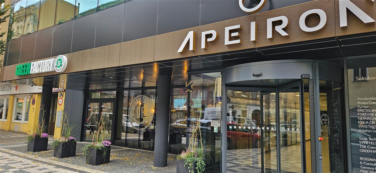 Pronájem obchodní jednotky 184 m2 se vstupem ze Sokolovské ulice a pasáže budovy Apeiron. Volné od 1.4.2026.