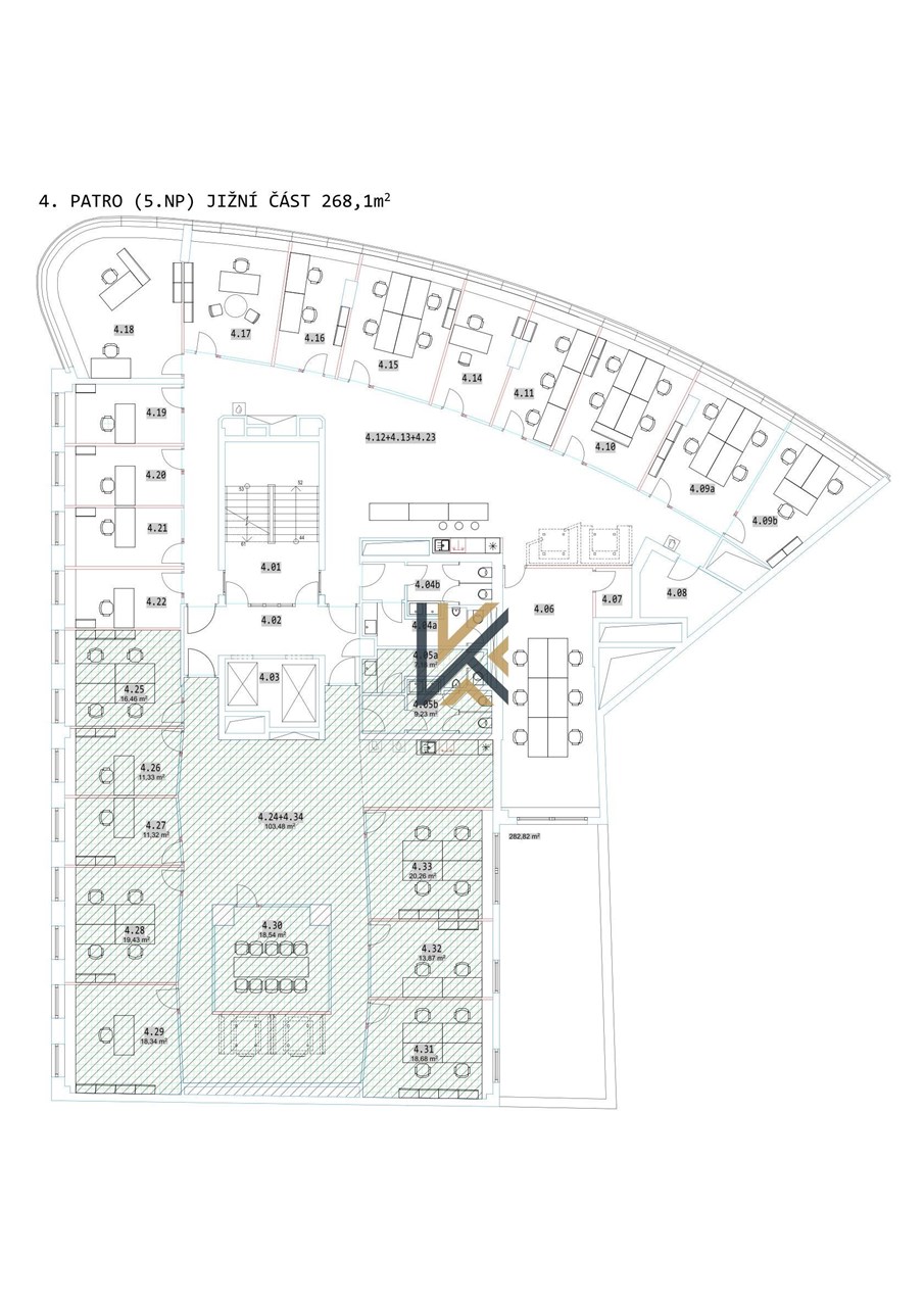Podnájem vybavené kanceláře o velikosti 268 m2 dispozičně členěné na menší kanceláře