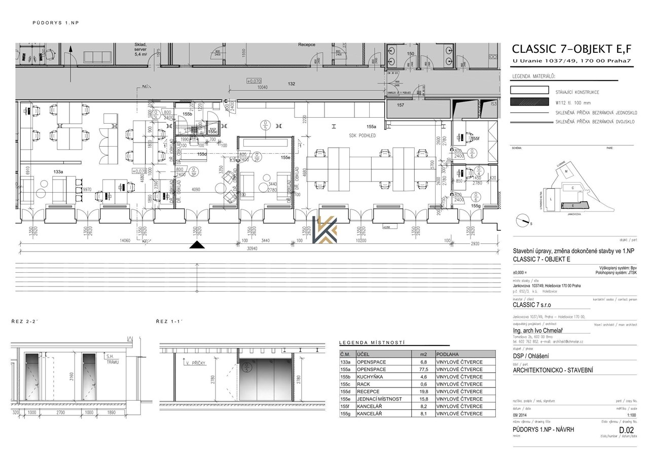 Kancelářské prostory s možností variabilního uspořádání dle přání klienta umístěné v 1 NP.