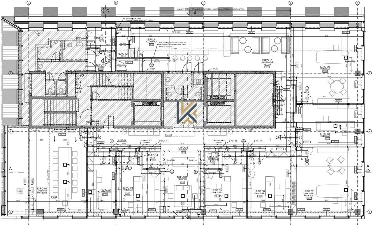 Plně vybavený kancelářský prostor ve 13.patře s celkovou užitnou plochou 446m2.