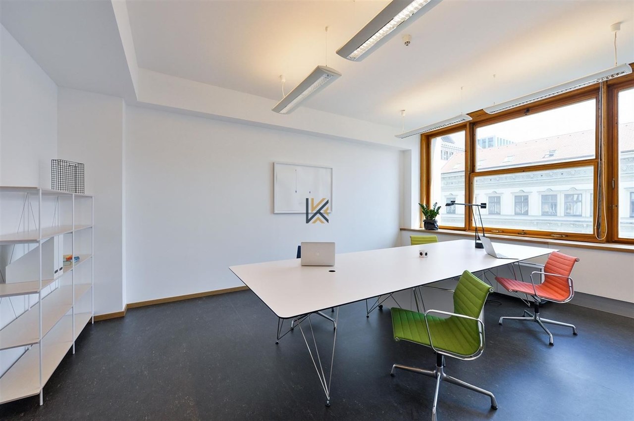 Prostorná kancelář o výměře 17 m2 (lze kompletně zařídit nábytkem). Nachází se v 5. patře budovy.