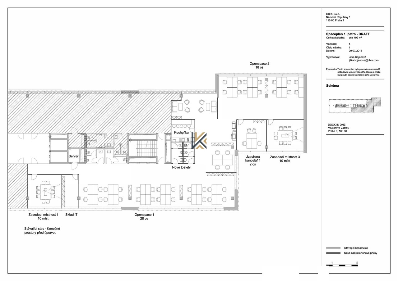 Jedná se o moderní kanceláře umístěné v 1. patře s výhledem o výměře 517 m2.