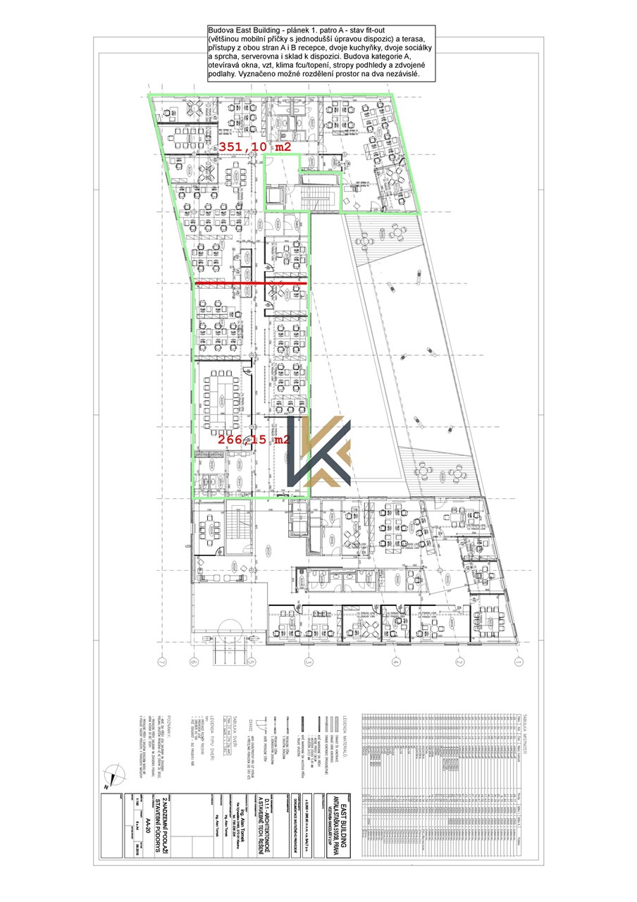 Kancelářská jednotka o velikosti 351 m2.