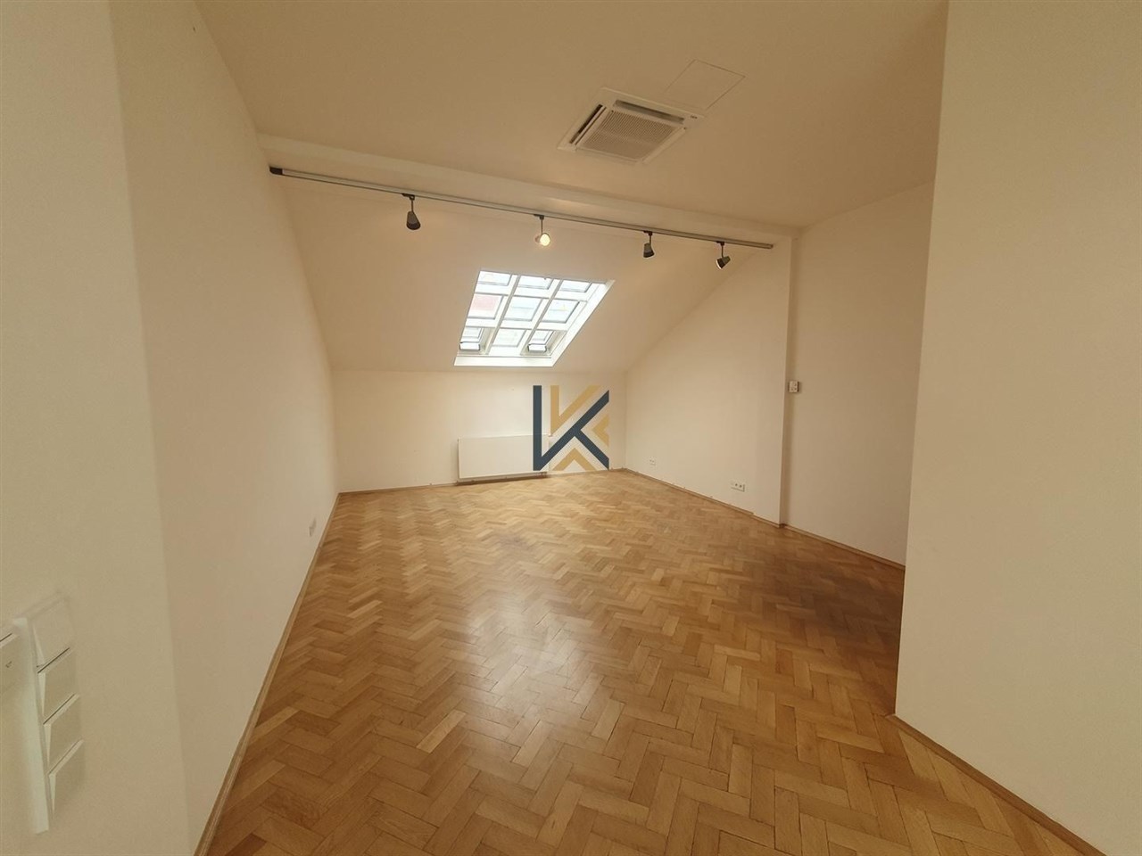Kancelář, 5.patro, 102 m2:Půdorys kanceláře je rozdělen takto:vstupní halavelká otevřená kancelářstřední kancelářmenší kancelář2x sociálkakuchyňský kout se spotřebičiprivátní terasa 9 m2