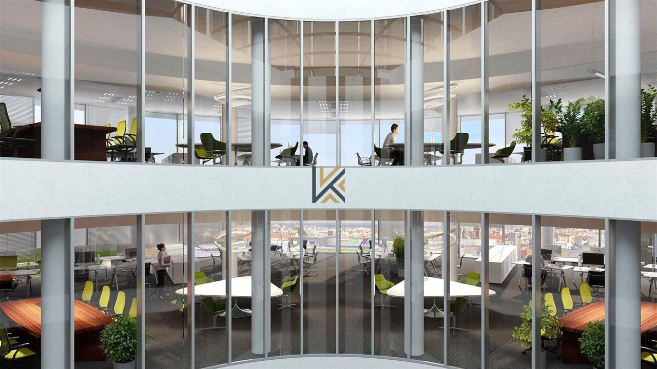 Moderní kancelářské prostory s nejmodernějšími ekologickými technologiemi - na patře dalších 11 menších kanceláří o velikosti 22 m2