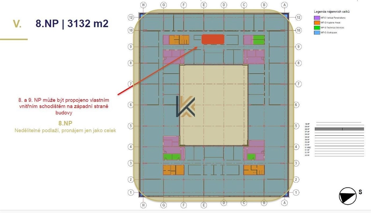 Celé patro o velikosti 3 132 m2, pouze jako celé podlaží.