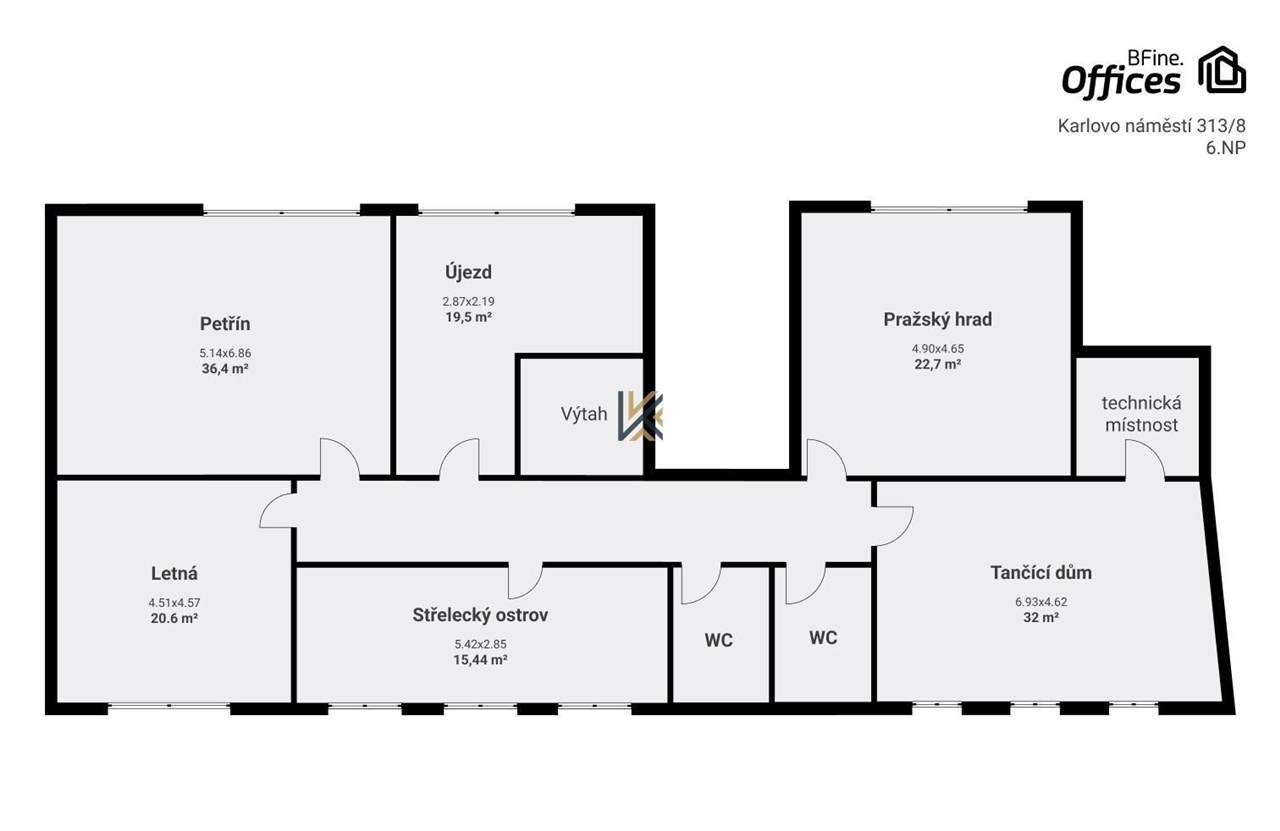 Pronájem 3 kanceláří (18, 19 a 27 m2).