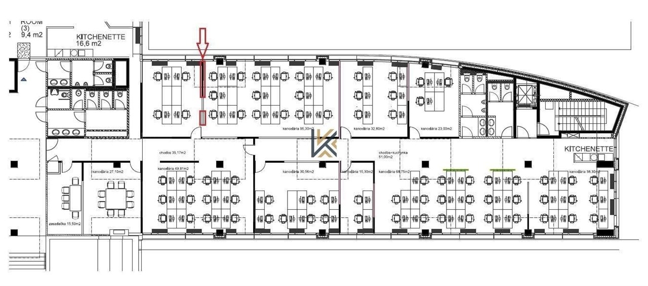 Pronájem kancelářské jednotky o celkové výměře 651 m2 ve 3. patře