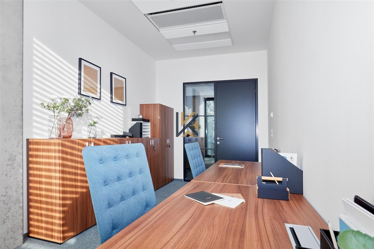 Samostatné servisované kanceláře pro 2 osoby na flexibilní délku nájmu. Benefitem těchto kanceláří jsou služby v ceně nájmu: energie, internet, úklid, reprezentativní služby recepce (pošta, vítaní návštěv aj.), rozsáhlé lobby, kuchyňka včetně neomezené konzumace nápojů, přístup 24/7. Možnost pronájmu zasedacích místností a také případného pracovního místa ve sdílené kanceláři či společných prostorách za příznivé ceny již od jednoho dne pronájmu.