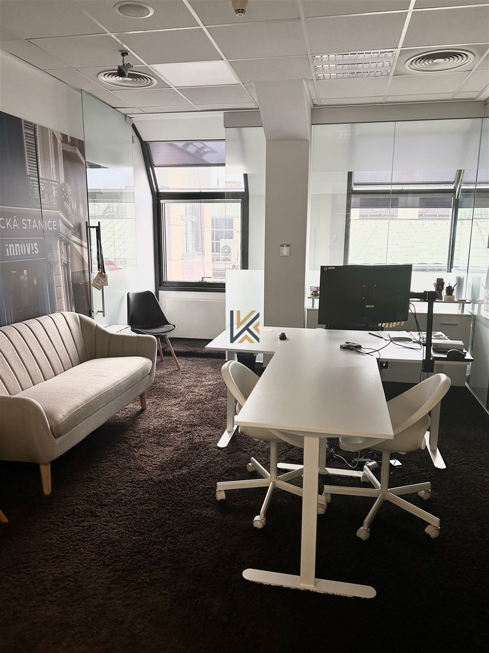 Moderní kancelářská jednotka 977 m2 v 6. patře budovy s vlastní privátní terasou k dispozici až 15 parkovacích míst.