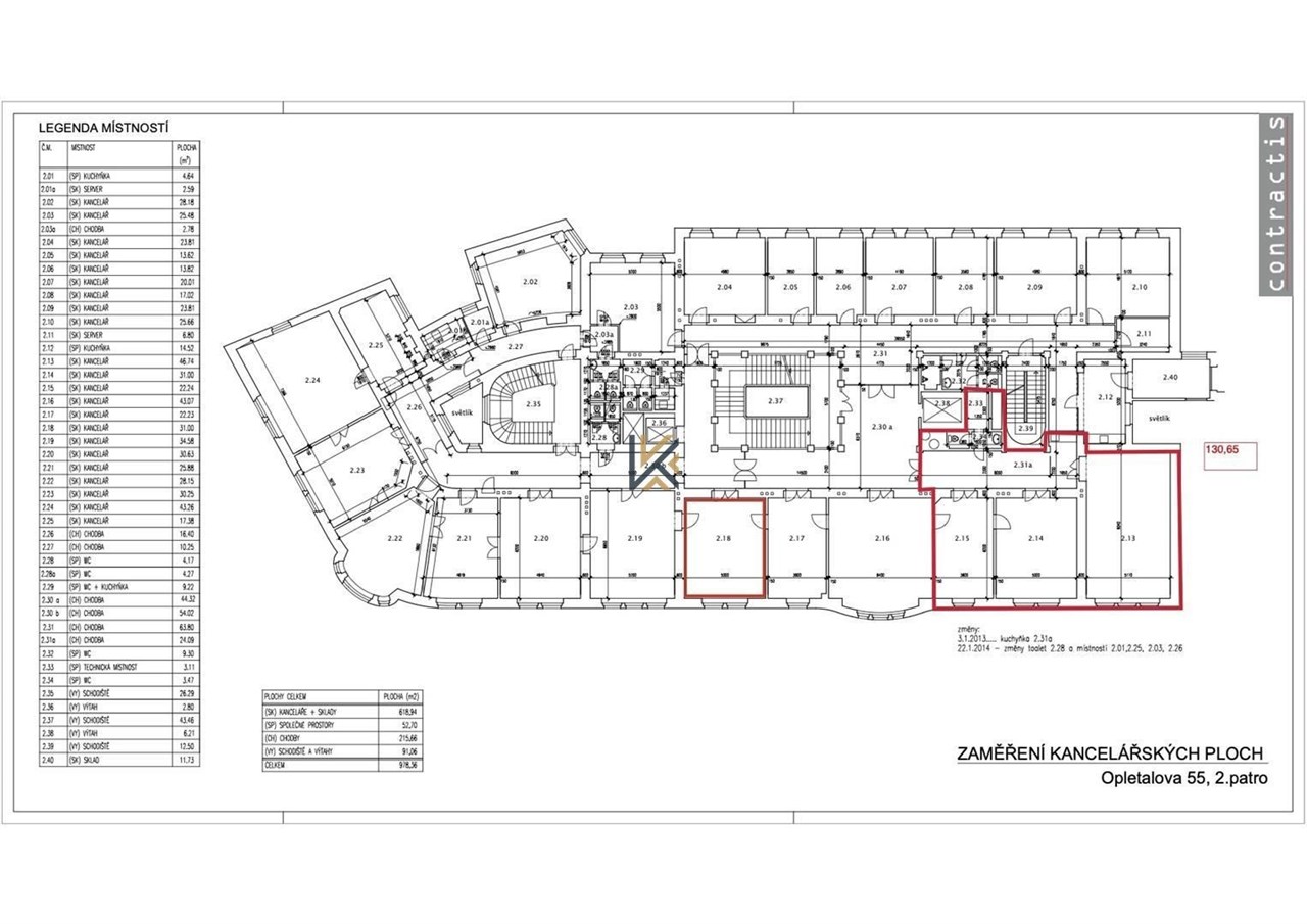 Nabízíme k pronájmu kancelářské prostory o celkové rozloze (vč. společných prostor) 130,65 m2 ve 2.patře.