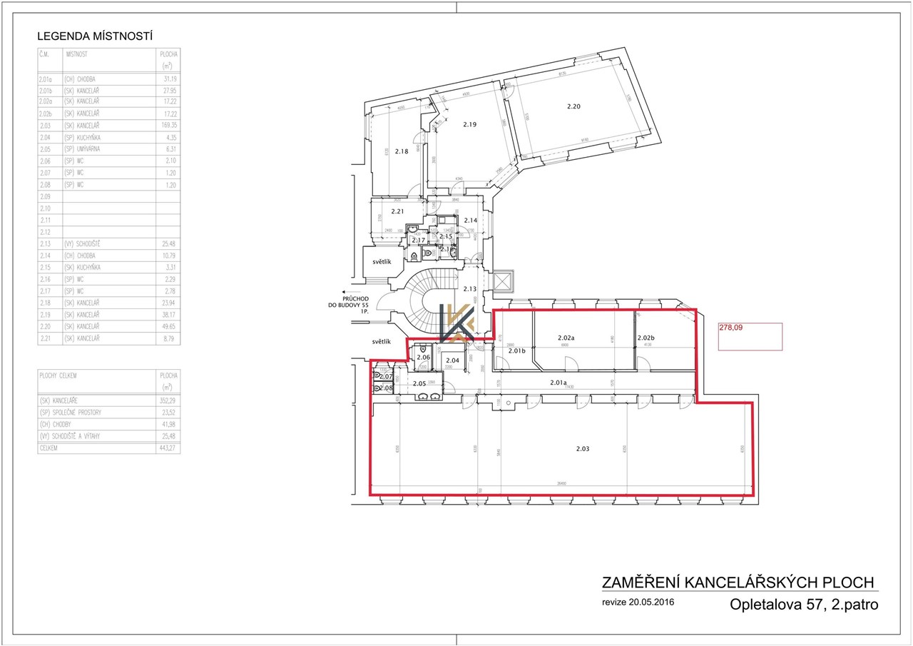 Nabízíme k pronájmu kancelářské prostory o celkové rozloze (vč. společných prostor) 278 m2 ve 2.patře.