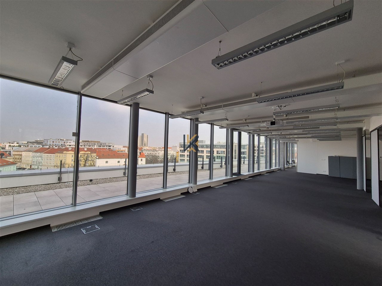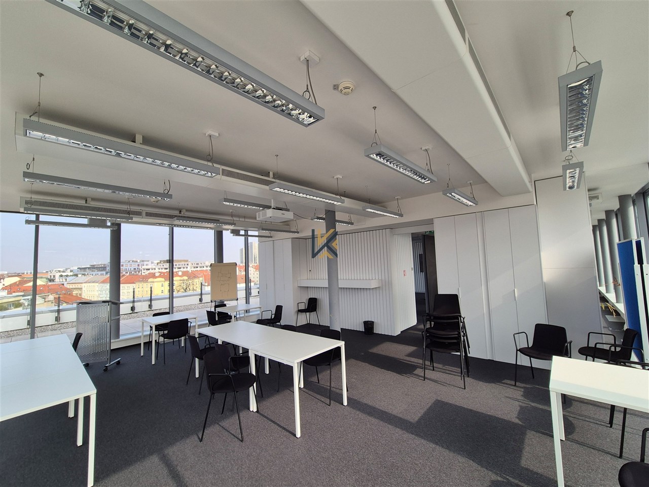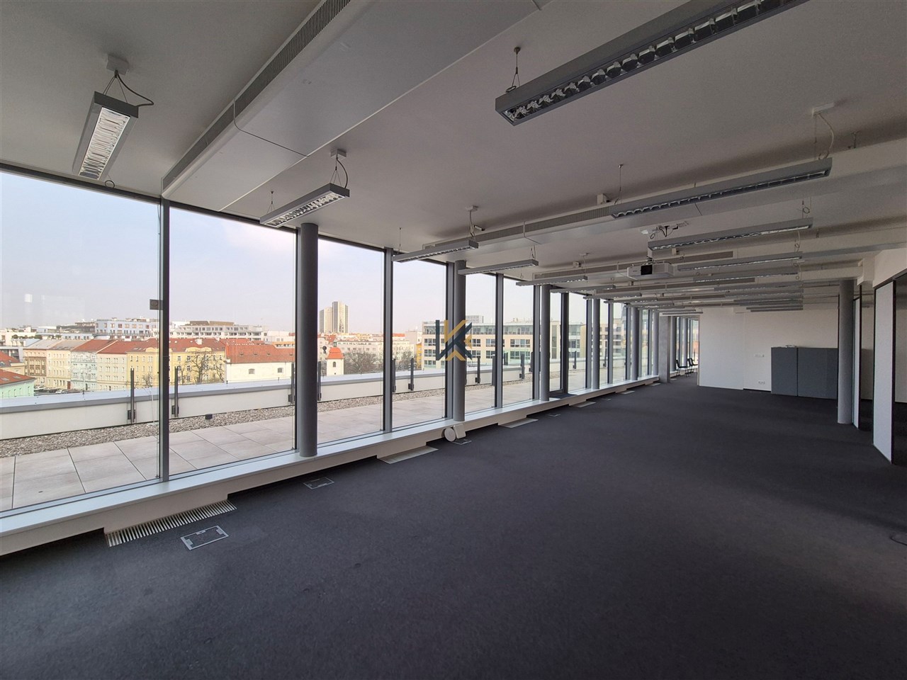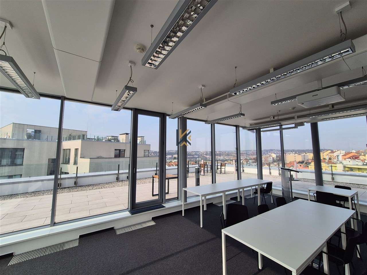 Kancelářské prostory o velikosti 390 m2 + privátní terasa 443 m2. lze dispozičně přizpůsobit dle přání klienta. Prostory se nachází v 8. NP.