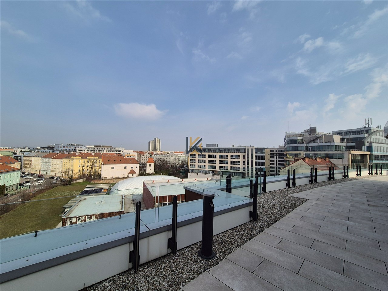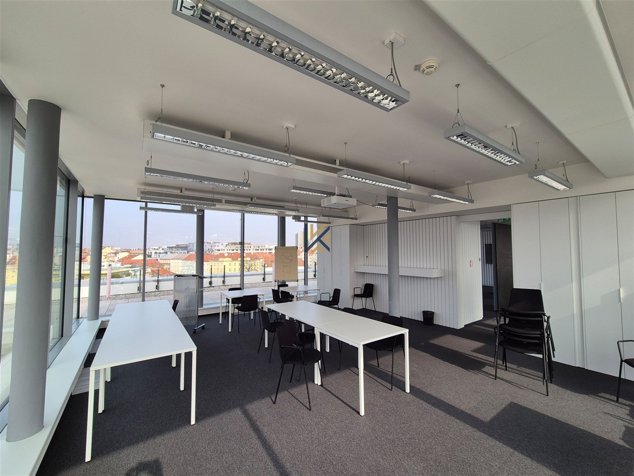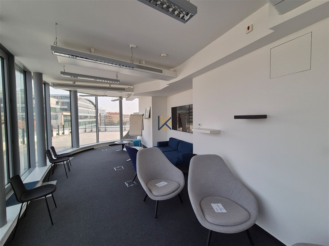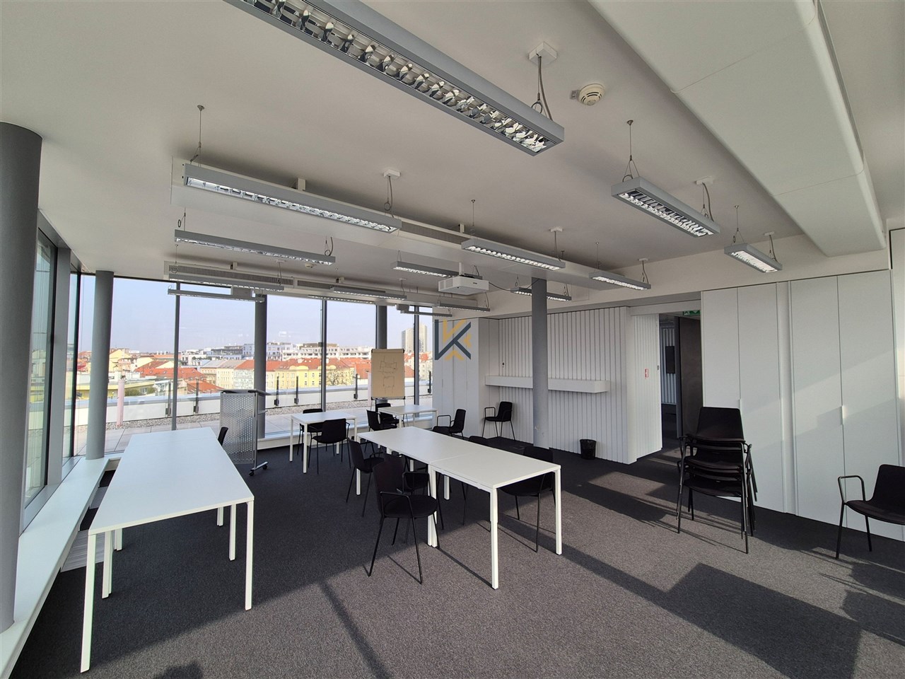Kancelářské prostory o velikosti 390 m2 + privátní terasa 443 m2. lze dispozičně přizpůsobit dle přání klienta. Prostory se nachází v 8. NP.