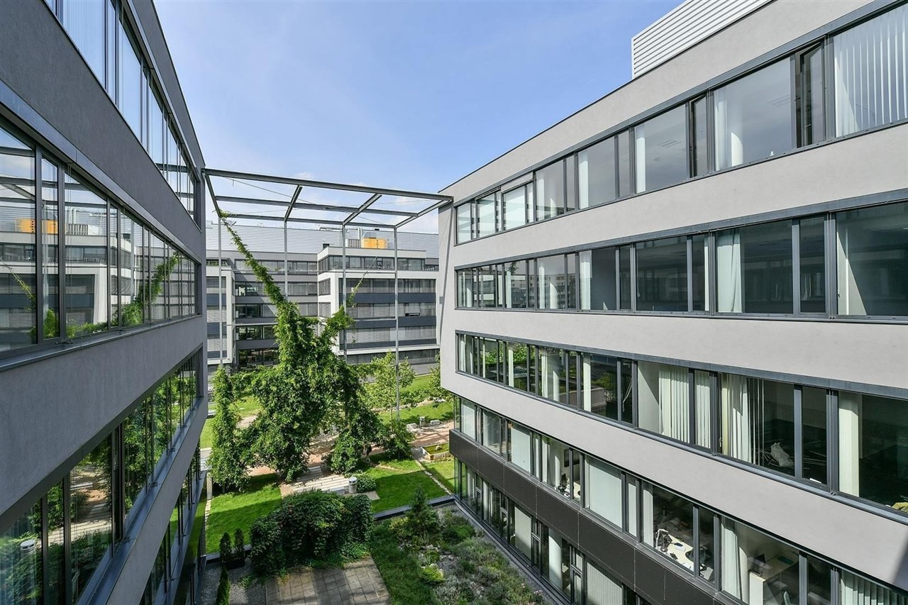 Pro nájemce je zde možnost využití fitness centra nebo venkovní posilovny. V podzemní garáži se nachází 426 parkovacích stání. Park, který obklopuje komplex administrativních budov, vytvořil zahradní ateliér Jena. Hlavní osu zeleného území tvoří potok, podél jehož proudu se postupně proměňuje vegetace. Platanová alej lemuje promenádu napříč celým komplexem a dominantní kovové konstrukce, po kterých se pnou vzrostlé vistárie, jsou dalším výrazným prvkem zahrady.