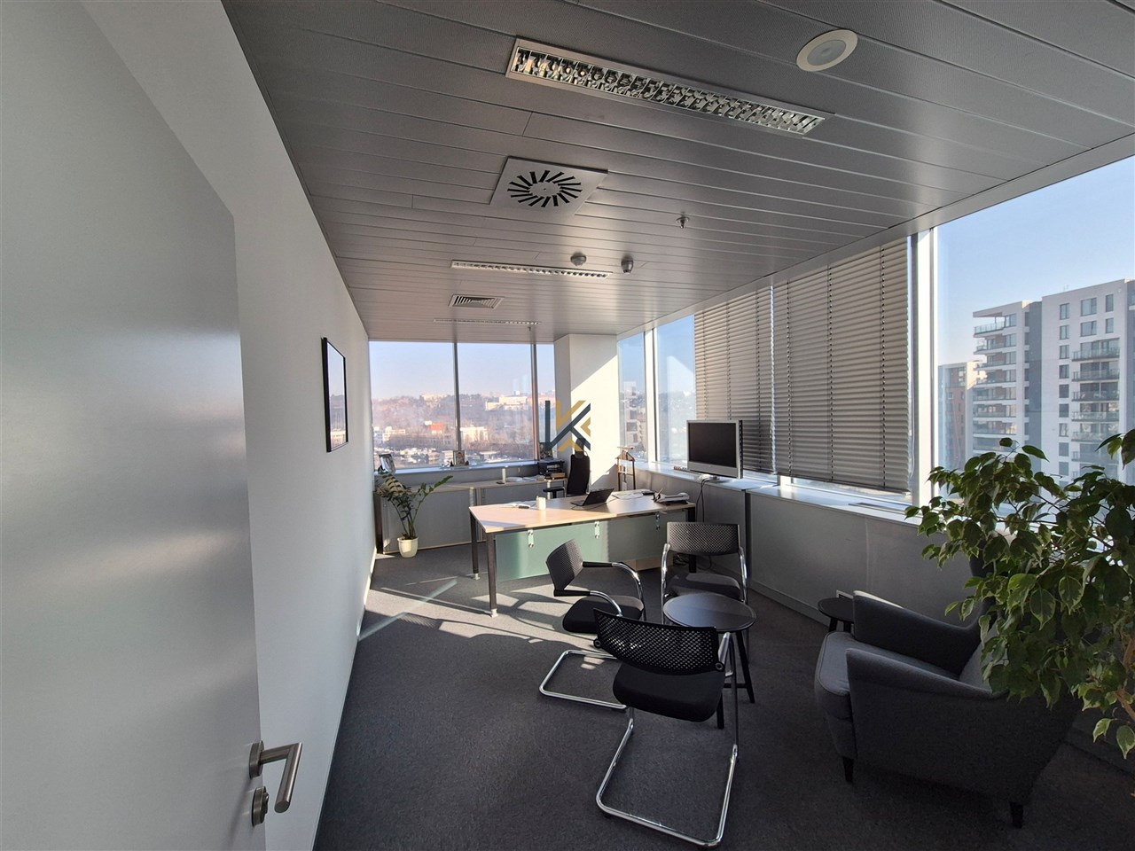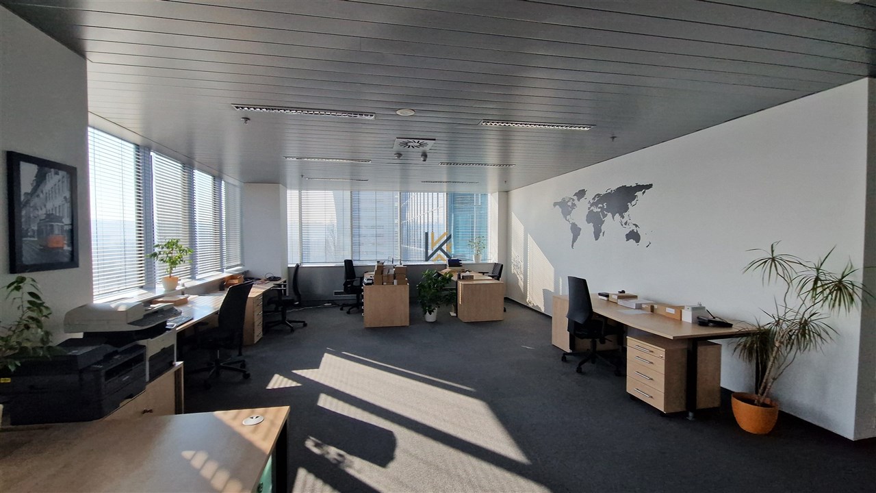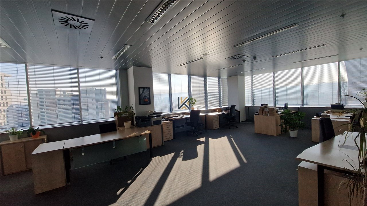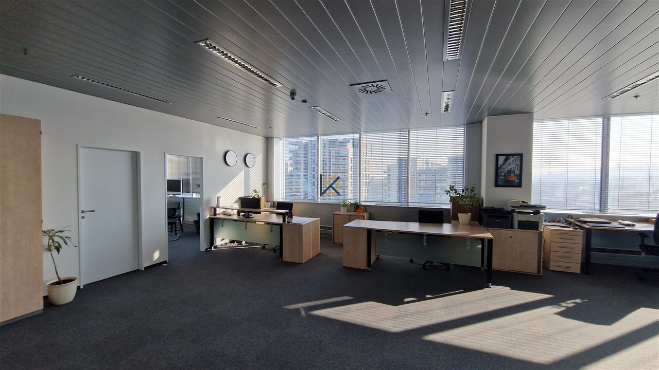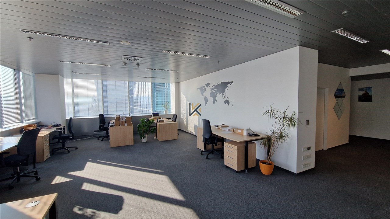 Kancelářské prostory o výměře 187 m2 v 6.p sdílené toalety, vlastní kuchyňka, vlastní server, openspace a 3 uzavřené kanceláře, klimatizovaná jednotka