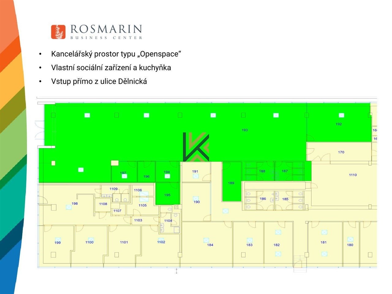 Kancelářská jednotka o velikosti 368 m2 s vlastním zázemím - jednotka má vlastní vstup (ne bezbariérový)