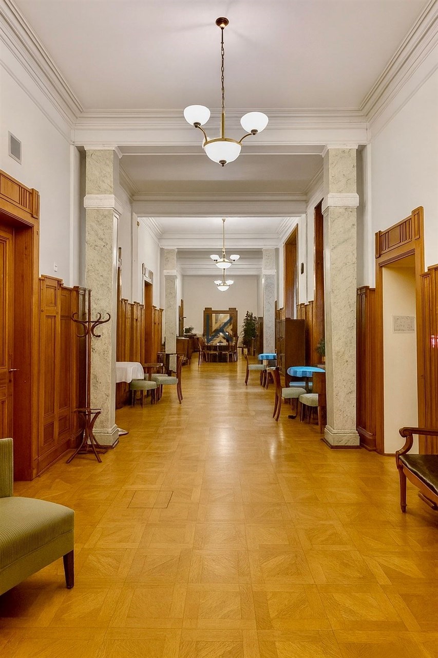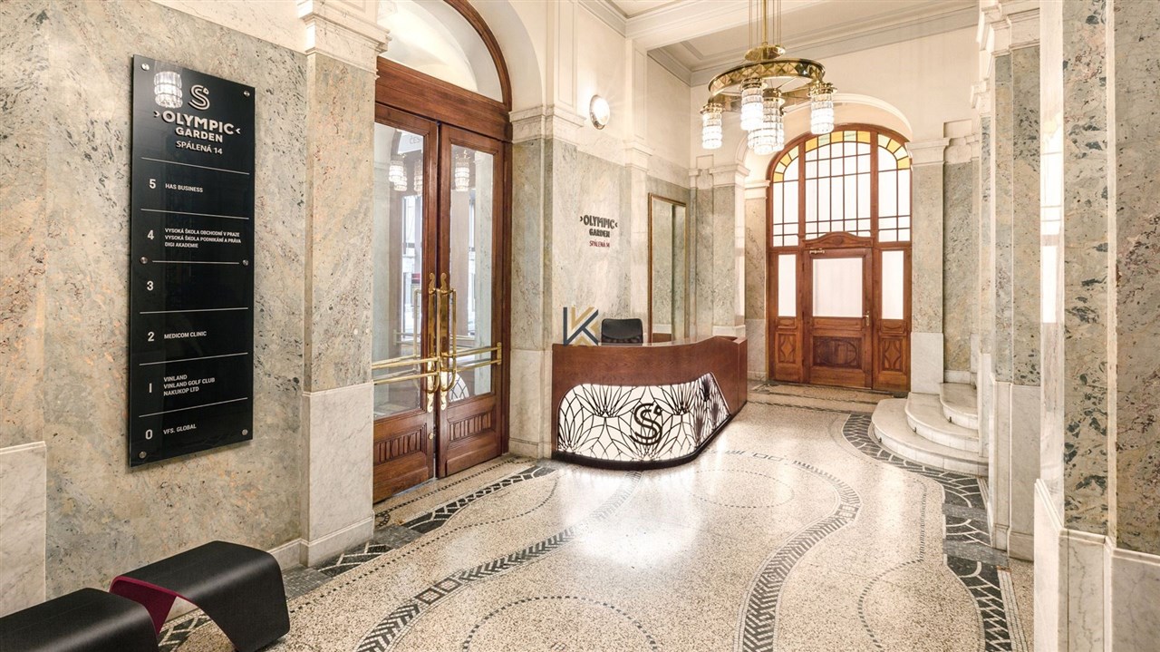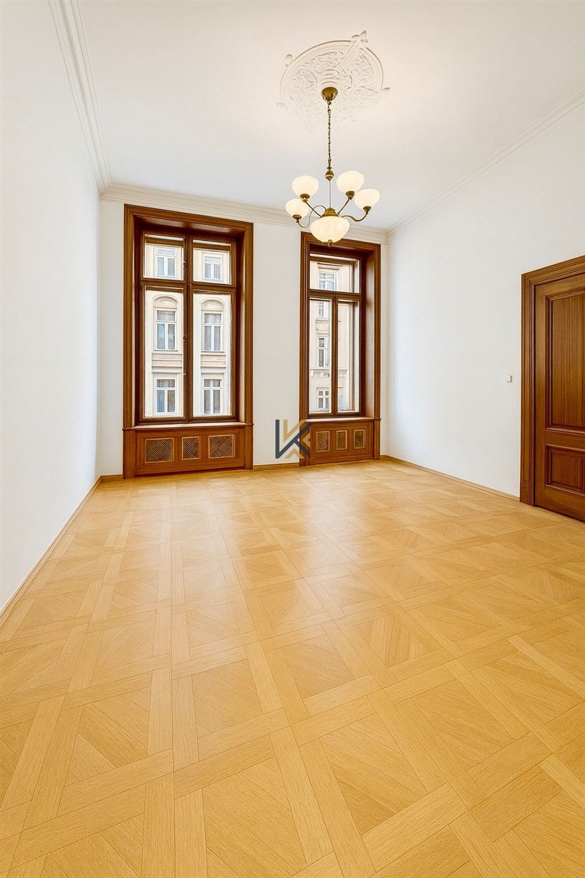 Secesní jednotka o velikosti 538 m2 orientace do ulice Spálená. 8 samostatných kanceláří 2 kuchyňky, WC a Sprcha vysoké stropy