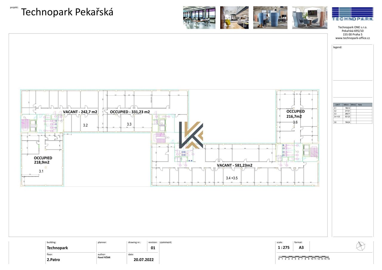 Kanceláře o výměře 302 m2 + add on (v plánku 3.4)