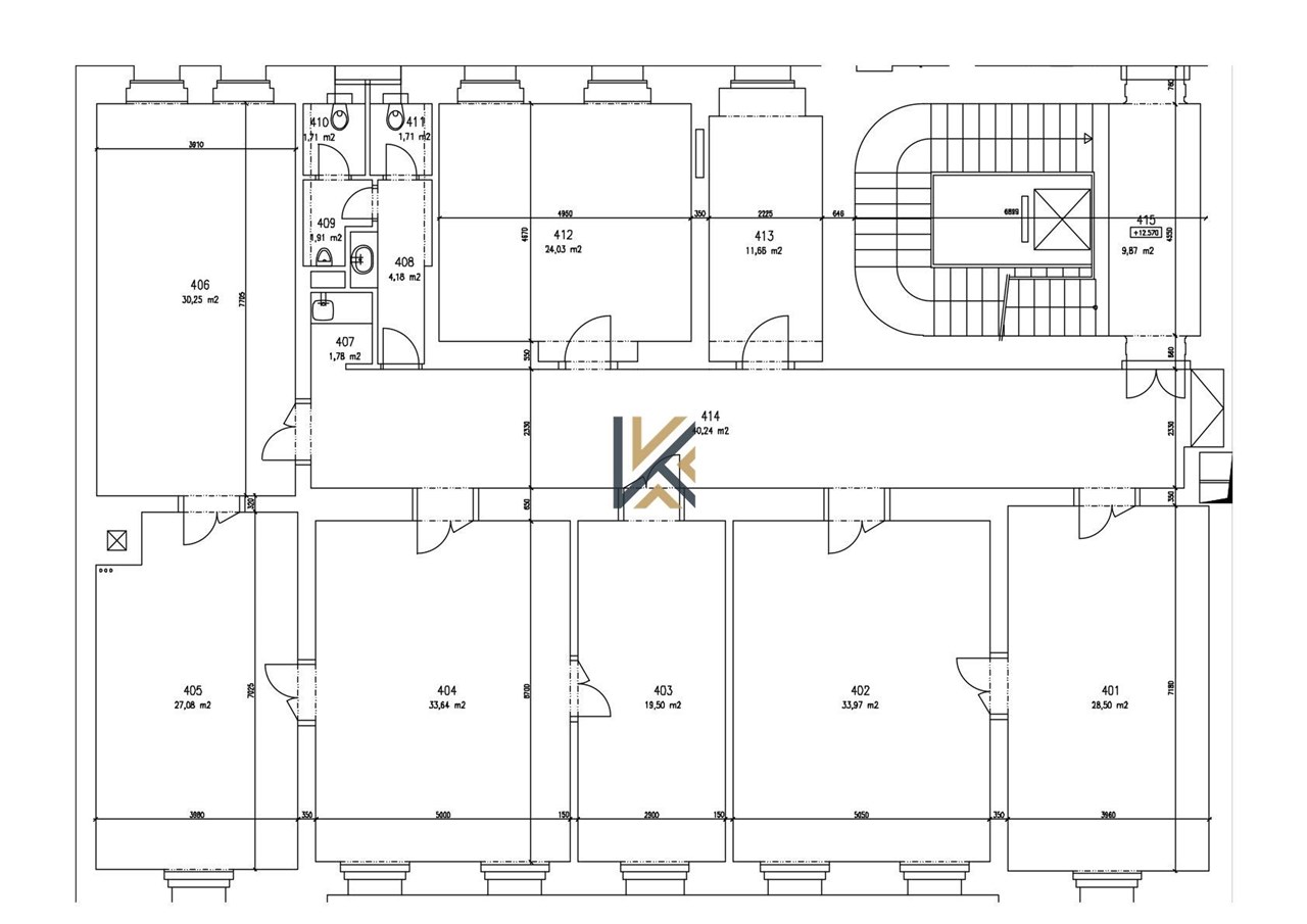 Klimatizované kancelářské prostory s vlastním zázemím v 3. patře budovy.