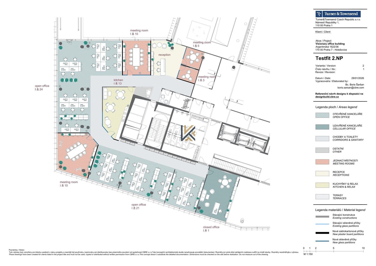Pronájem kanceláří o celkové velikosti 648 m2 + terasa 43 m2.