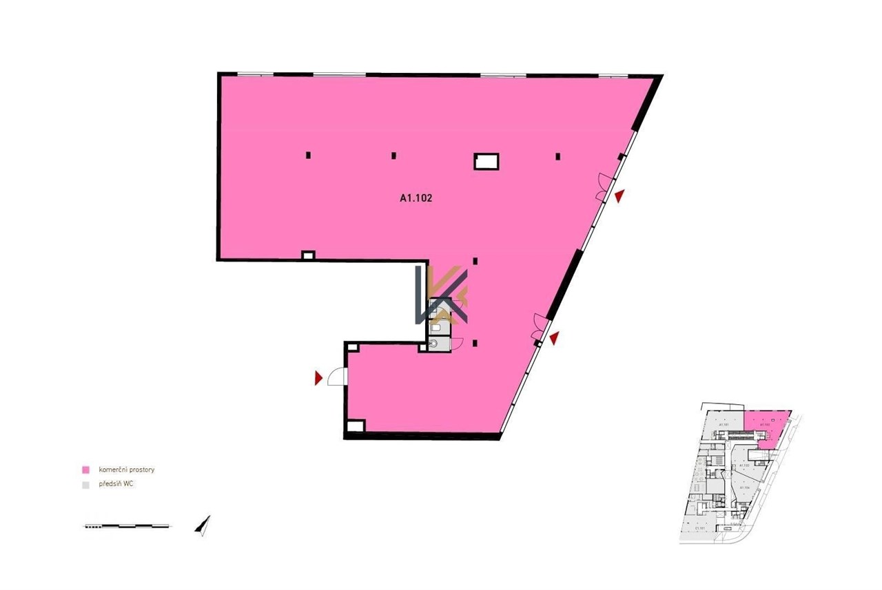 Obchodní prostory o výměře 358m2 s přímým vstupem z ulice.