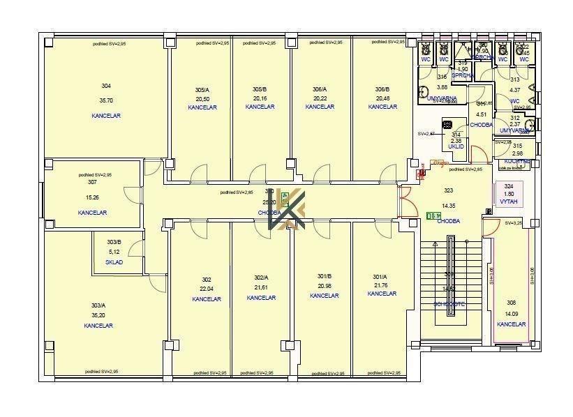 Kancelářské prostory disponují otevíratelnými okny. Nachází se v 2. patře.